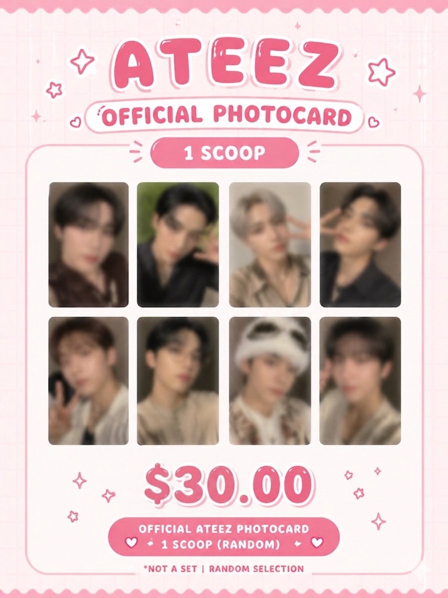 Now Available Ateez Mystery Scoop official PCs. Who will Bias You? Who will bias wreck you now? Take the chance, Make those beads Bouncy into the Plate and see how many beads per scoop you will get?